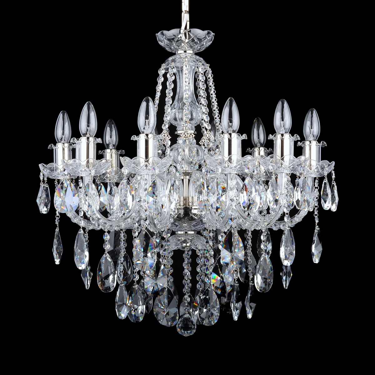 10-flammiger Kristallleuchter aus Silber im „Glamour-Stil“